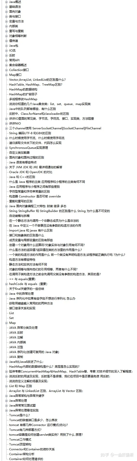 太过基础的的面试题就不为大家详细展开了,给大家截图个大概内容,哪里掌握得不好,自己去刷题即可!