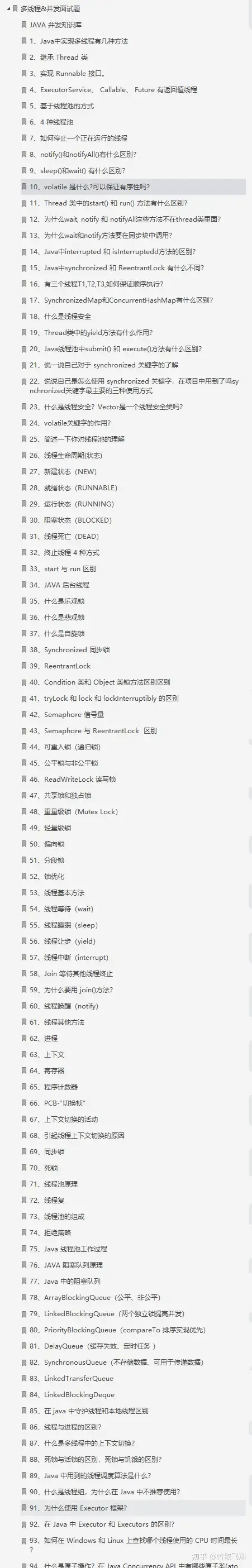 这套互联网 Java 工程师面试题包括了:MyBatis、ZK、Dubbo、EL、Redis、MySQL、并发编程、Java 面试、Spring、微服务、Linux、Springboot、SpringCloud、MQ、Kafka 面试专题(共 26 大专题,32W 字)