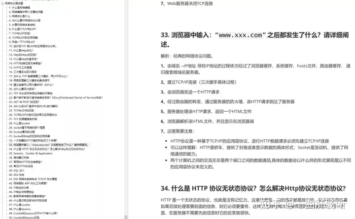 这份面试手册涉及的技术栈非常全面而且足够细致,内容包括网络协议、Java 基础、进阶、字符串、集合、并发、JVM、数据结构、算法、MySQL、Redis、Mongo、Spring、SpringBoot、MyBatis、SpringCloud、Linux 以及各种中间件等等,