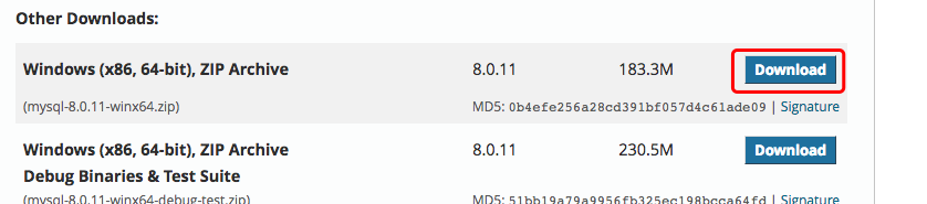 下载完后,我们将 zip 包解压到相应的目录,这里我将解压后的文件夹放在 C:\web\mysql-8.0.11 下。