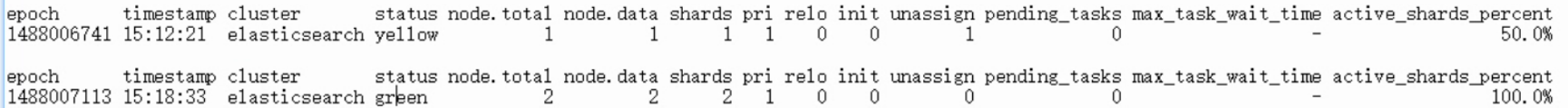 复制重新解压一个elasticsearch,然后启动后再次查看健康状况: