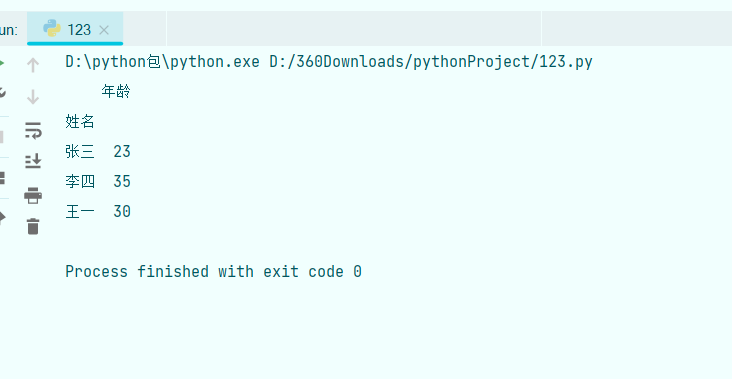 a=qw.pivot_table(data,values='年龄',index='姓名',aggfunc='sum')# 参数values用于指定要计算的列;index用于指定一个列作为数据透视表的行标签,aggfunc用于指定参数values的计算类型