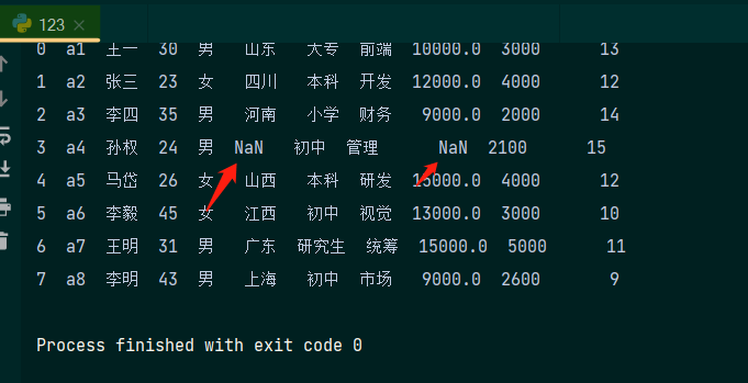 b= data.fillna({'籍贯':'陕西','薪资':'15000'}) #通过fillna()函数传入一个字典,将不同列中的缺失值设置为不同的填充值。