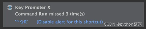 假设开发者想在Pycharm中运行脚本,如果不记得快捷键,会右键单击,然后选择“run”。如果安装了Key Promoter X,就会弹出下面的提示。