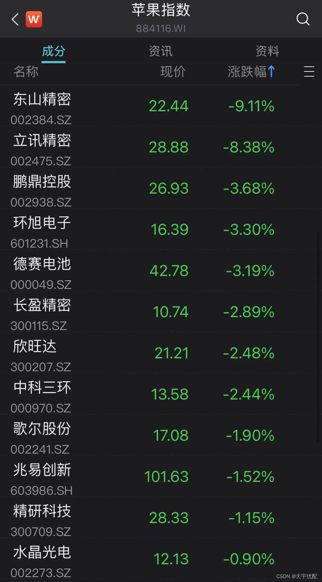 1月4日,“果链”龙头立讯精细开盘跳水,一度大跌近9%。到午间收盘,立讯精细股价跌8.38%,总市值为2055亿元。苹果概念股普跌,东山精细跌9.11%,舜宇光学科技跌9.18%、高伟电子跌7.82%、比亚迪电子跌4.30%。