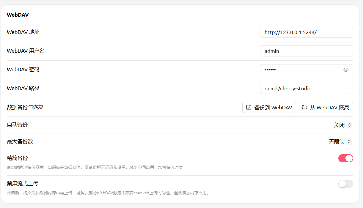 许多支持 WebDAV 的服务或工具(如 Alist、Rclone 等)会将 /dav 作为默认的 WebDAV 访问入口。这种设计有助于区分普通 HTTP 请求和 WebDAV 请求,避免路径冲突。