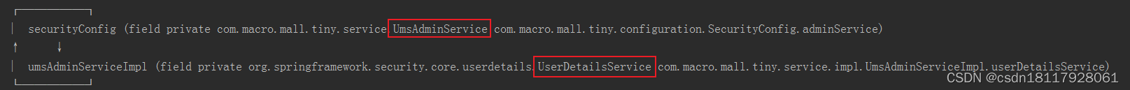 - UmsAdminServiceImpl依赖(UserDetailsService,PasswordEncoder)