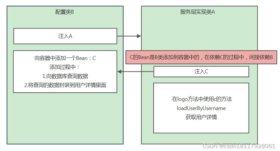 - SecurityConfig向容器中注入了2个Bean(PasswordEncoder与UserDetailsService)