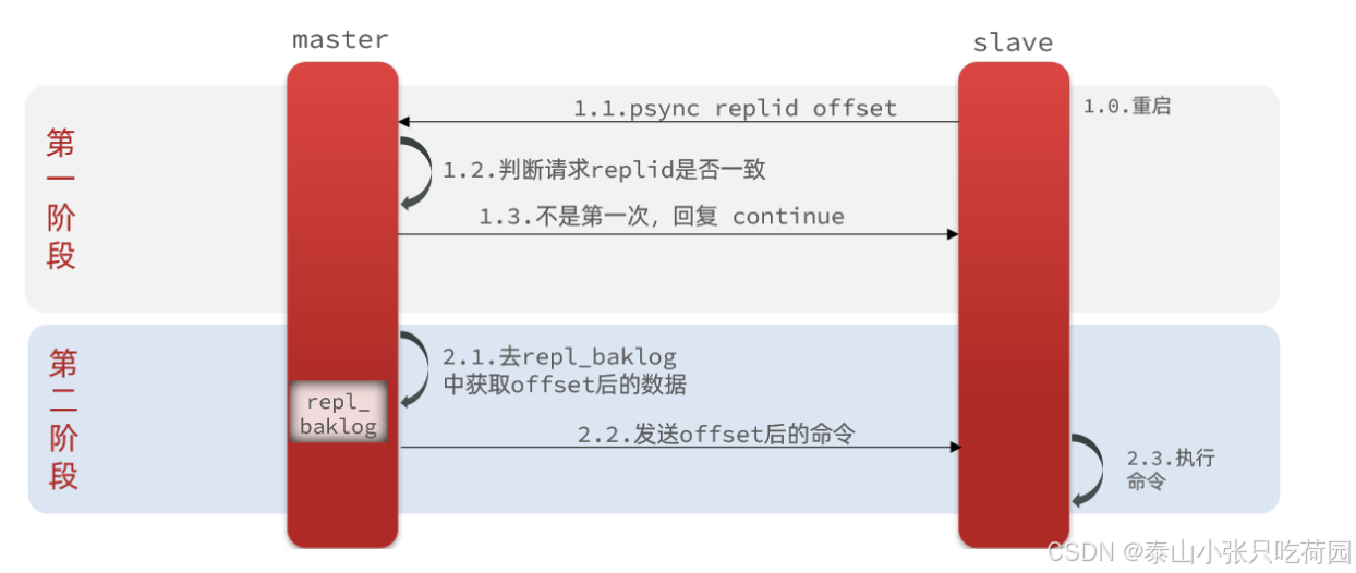 repl_baklog中会记录Redis处理过的命令日志及offset,包括master当前的offset,和slave已经拷贝到的offset:
