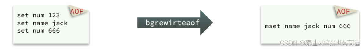 如图,AOF原本有三个命令,但是set num 123 和 set num 666都是对num的操作,第二次会覆盖第一次的值,因此第一个命令记录下来没有意义。