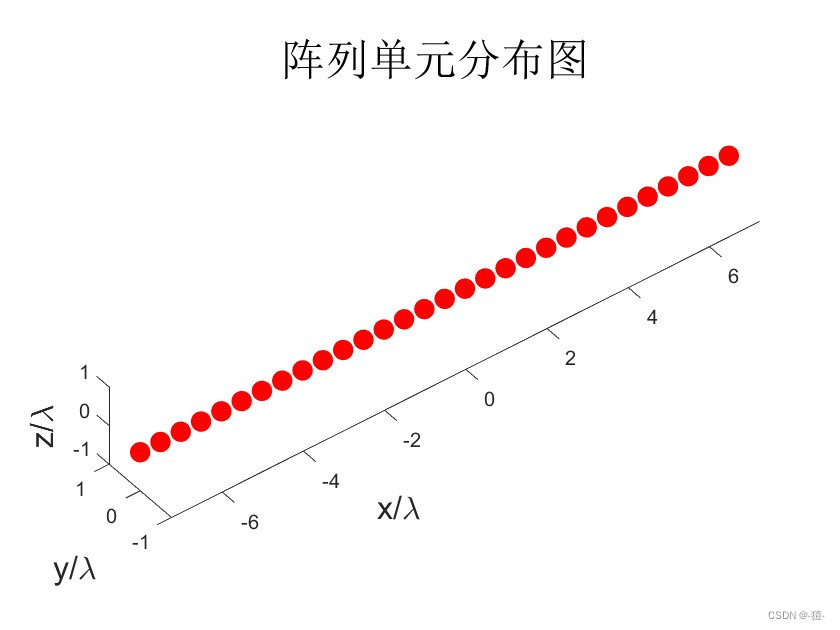 单元数量及排布: 30个全向单元(Nantenna值可以修改),沿着x轴方向分布,单元间距0.5倍波长