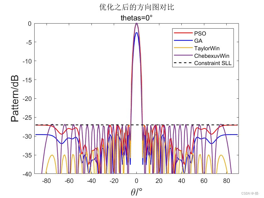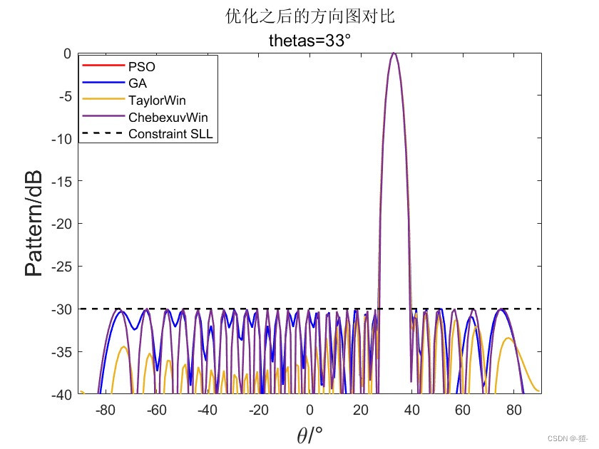 副瓣电平约束: SLL dB=-30dB(可以修改)