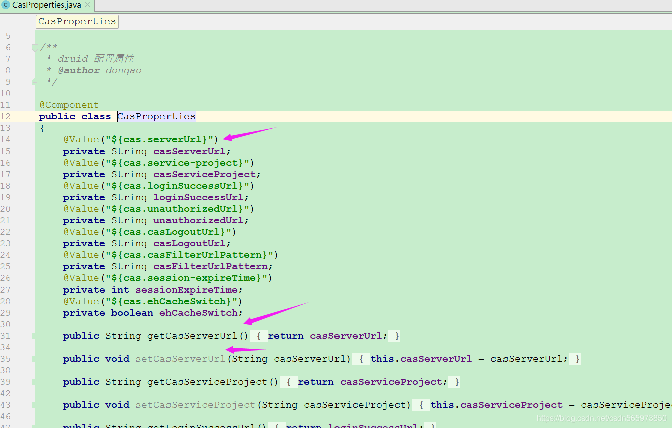 springboot 给静态变量赋值/给静态方法注入值 springboot常规注入值方法 @Valuespringboot无法通过@Value给静态变量赋值springboot也可通过@PostConstruct给静态变量赋值 springboot常规注入值方法 @Value 同时生成get方法便于后续获取值; springboot无法通过@Value给静态变量赋值 此时需要给当前类加@Component注解,通过set方法设置 @Value注解加载set方法上 ,set方法的参数可以任意命名,不能同属性名,此后当前工具类下的静态方法可直接使用属性值 springboot也可通过@PostConstruct给静态变量赋值
