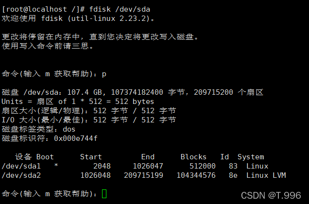 命令格式:fdisf -l /dev/sda或fdisk /dev/sda