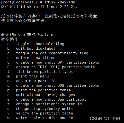 q:退出fdisk程序,不保存