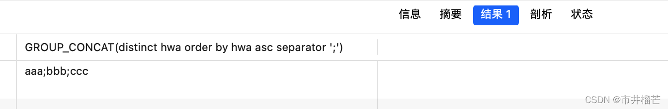 可选参数可以对将要拼接的字段值去重、排序、指定分隔符(默认以逗号分隔)