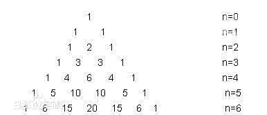第n行的m个数可表示为 C(n-1,m-1),即为从n-1个不同元素中取m-1个元素的组合数。