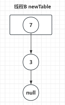 执行Entry<K,V> next = e.next; 因为线程B已经改了节点指向,⑦->③,所以next = ③