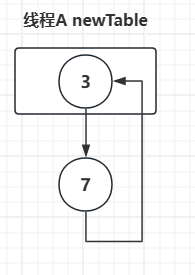 ③就到头部去了,③->⑦,⑦->③,虽然最后执行e = next; e就为null,退出了循环,但死链已成。