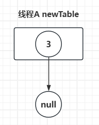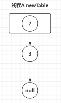 回到线程A执行,线程A的newTable还是空的,它要把节点搬过来了,从transfer第10行,e.next = newTable[i];开始执行,它的e为③,next为⑦