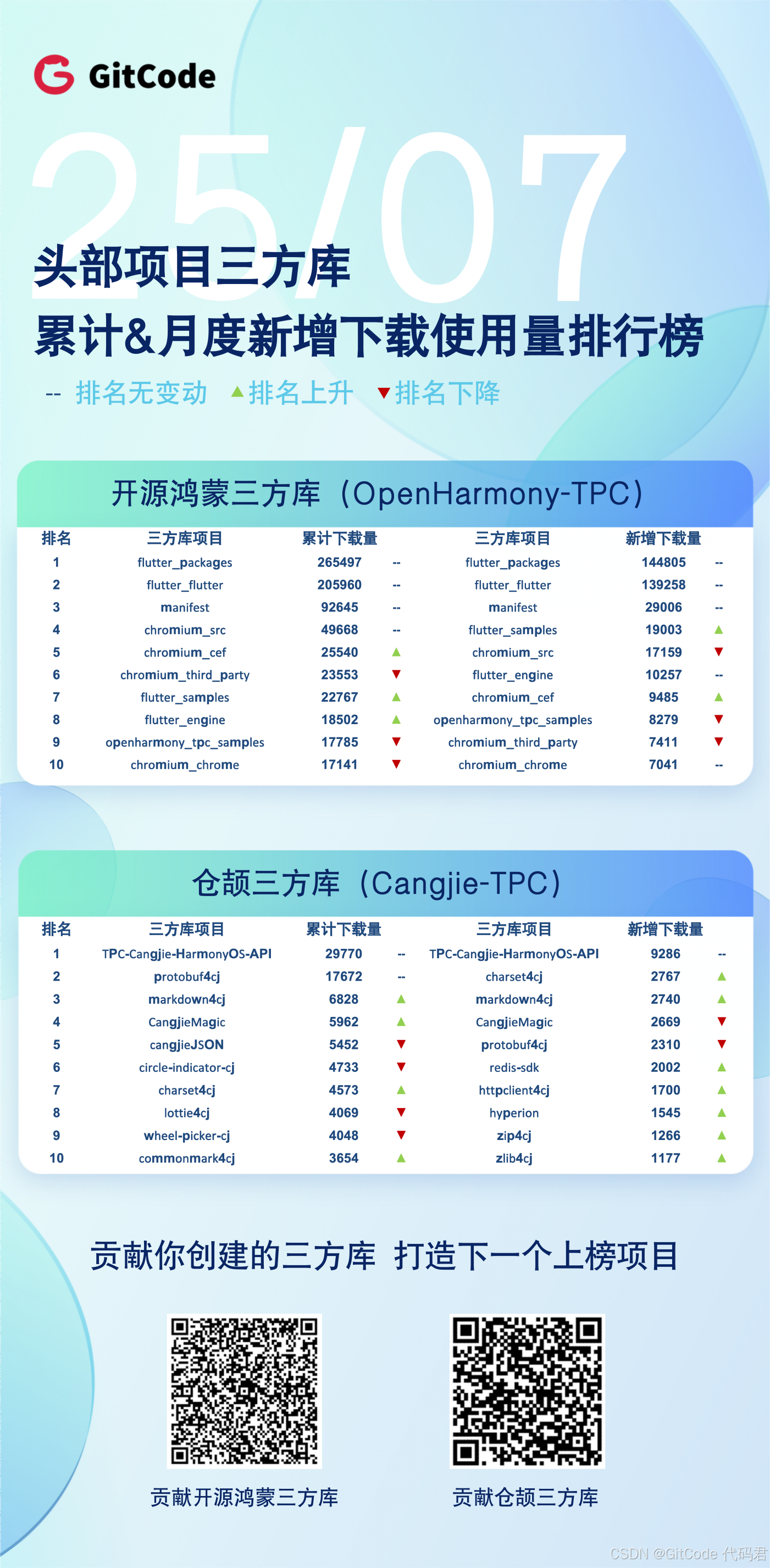 每一次代码提交都在推动生态进化!7月头部项目三方库下载量TOP10正式揭晓。你的项目,能否成为下个月的黑马?