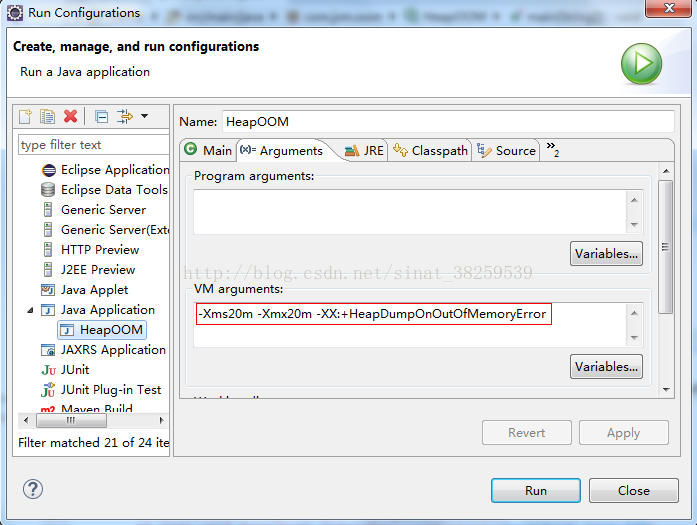 0、设置jvm虚拟机大小:VM Args : -Xmx20M -XX:MaxDirectMemorySize=10M