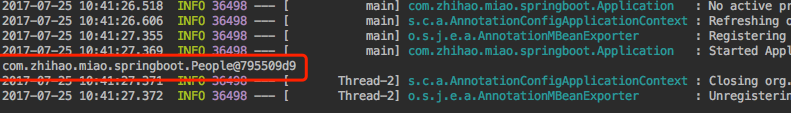 在上面的列子的相同包下(com.zhihao.miao.springboot)配置了People,并将其纳入到spring容器中(@Component),我们知道@SpringBootApplication注解会扫描当前包及其子包,所以People类会纳入到spring容器中去,我们需要将其排除在spring容器中,如何操作?