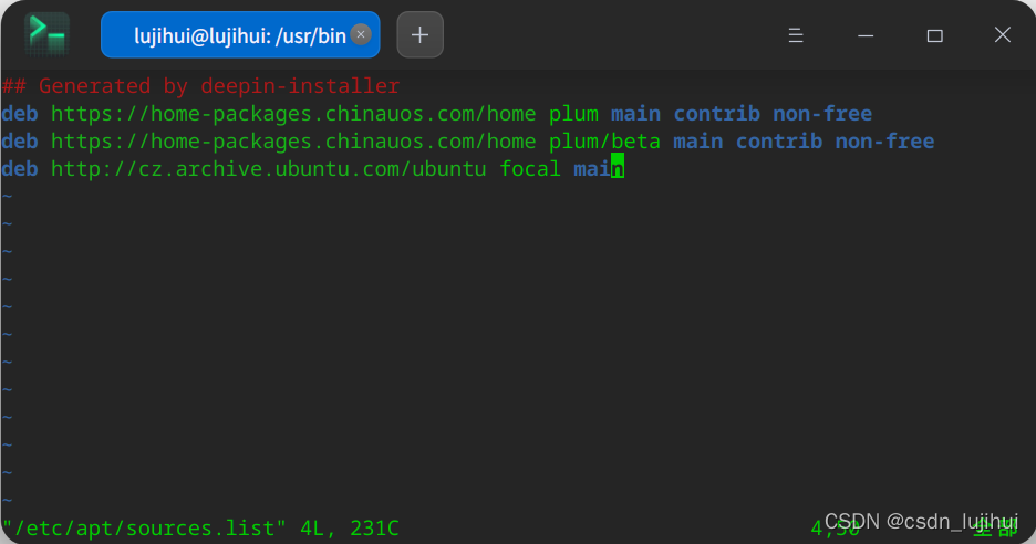 root@lujihui:/usr/bin# vim /etc/apt/sources.list