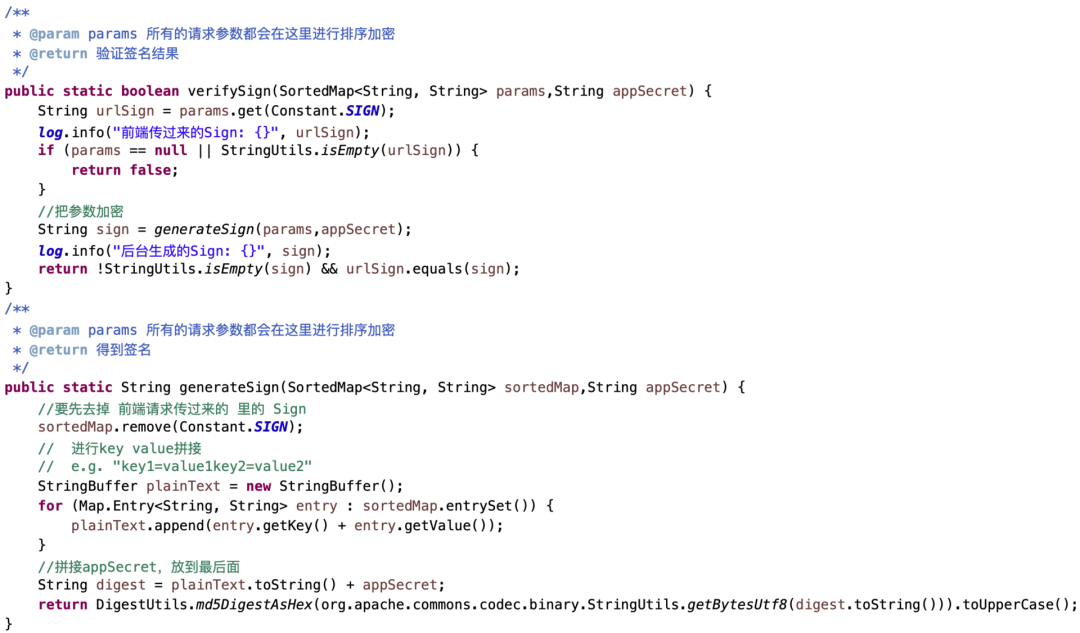 signature = DigestUtils.md5DigestAsHex(sortParamsMap + appSecret)