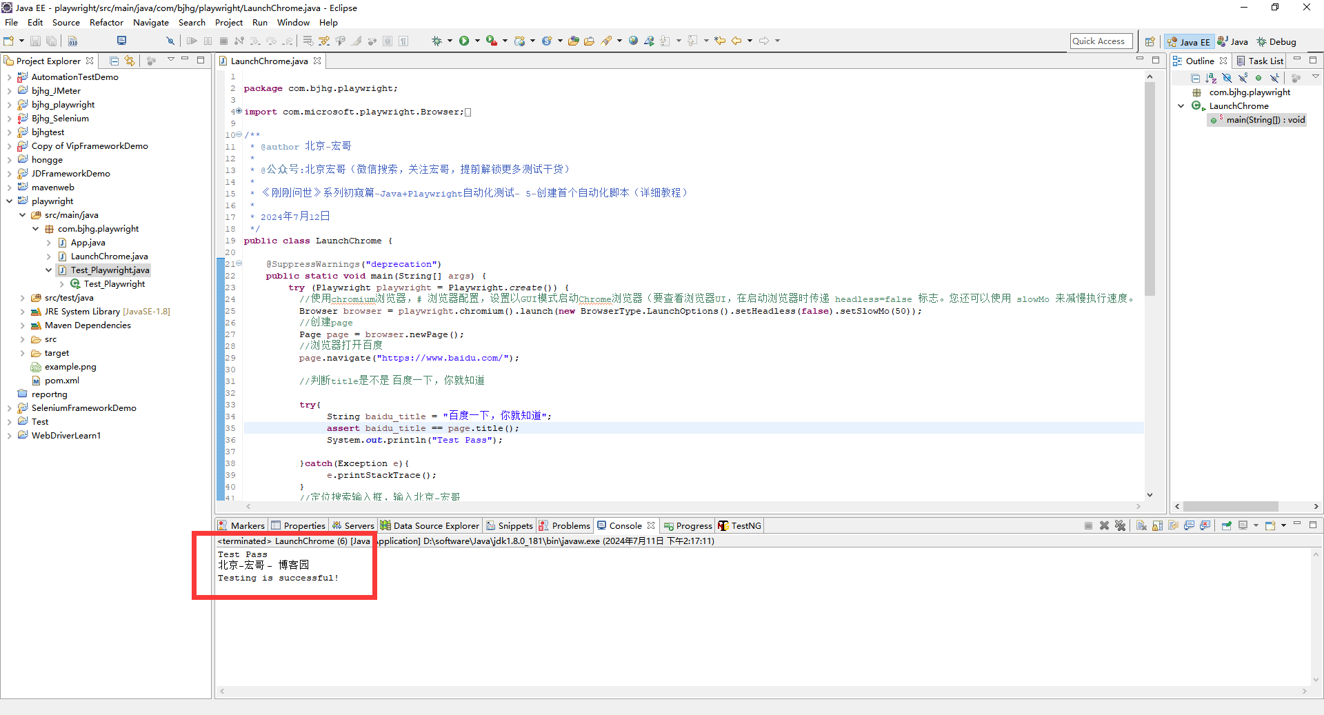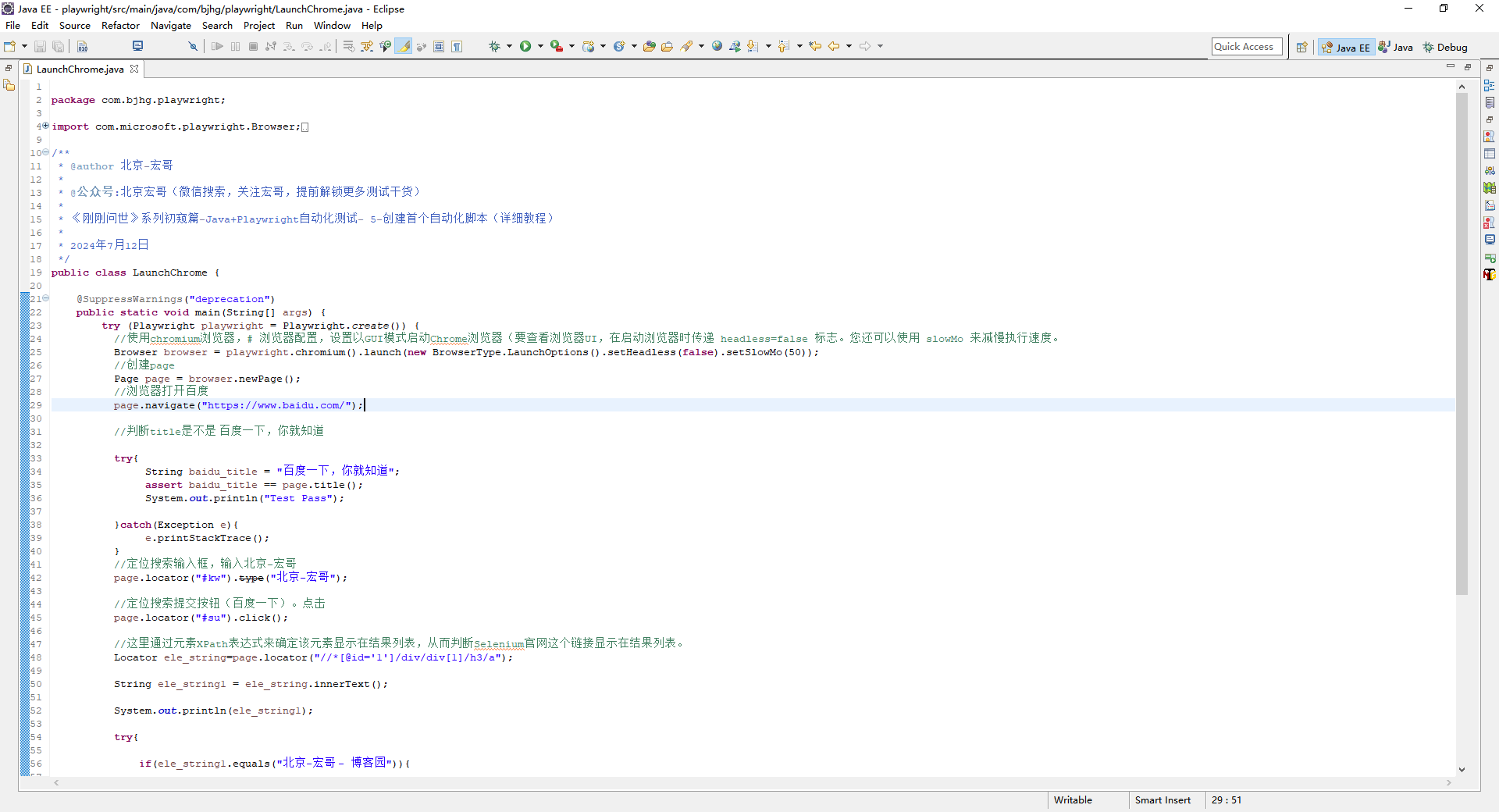 测试用例:打开百度首页,搜索:北京-宏哥,然后检查搜索列表,有没有 北京-宏哥 博客园链接。后续文章为了避免不必要的麻烦和错误,宏哥都在maven搭建的环境中进行实战演示。