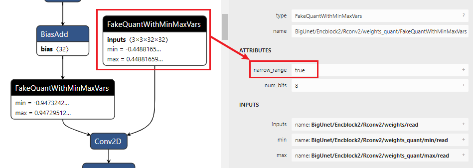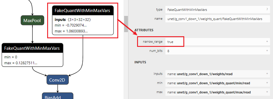 2)查看Fakequant OP中的min/max值,根据bit width来判断,例如min =? (-128/127) * max