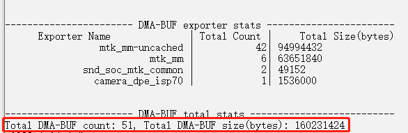 I.系统亮屏静息状态执行“dmabuf_dump -b”命令,得到系统Total DMA-BUF值