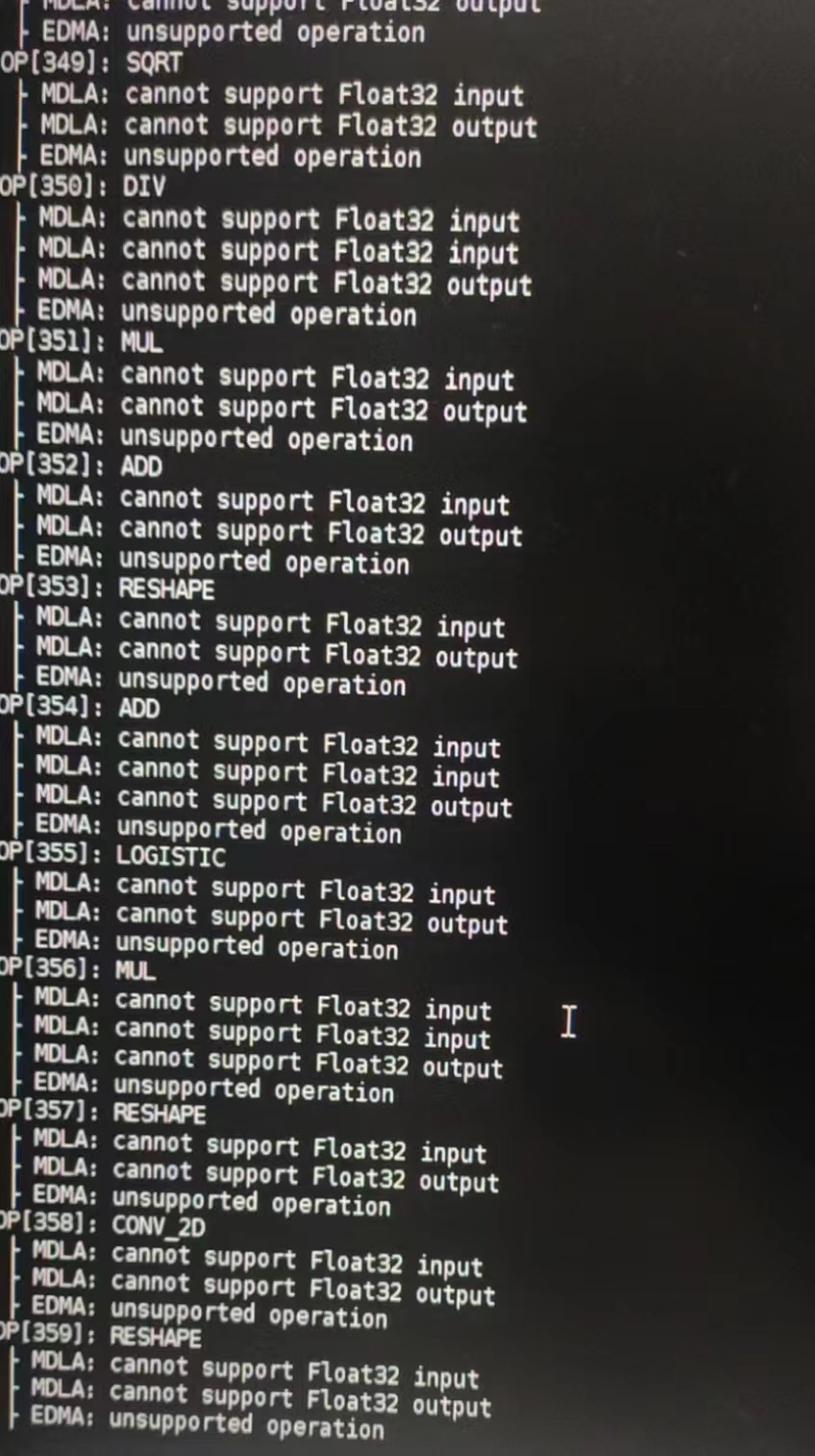 ** TFlite编译dla时,报错不支持float32,如何进一步处理?