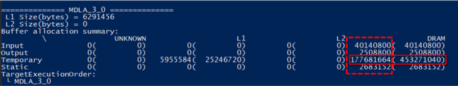 有关其中各项的数据含义解读,请参考:Neuron SDK常见问题(包括Tools和Neuron RuntimeAPI) ==>“如何解读使用ncc-tflite编译模型时下“—show-memory-summary”参数后印出的 Buffer allocation summary各项数据含义?”