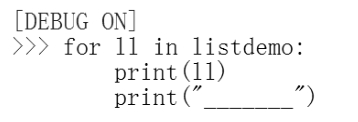 在出现“[DEBUG ON]”后,在“>>>”提示符后输入待调试的语句。例如,输入如下for语句: