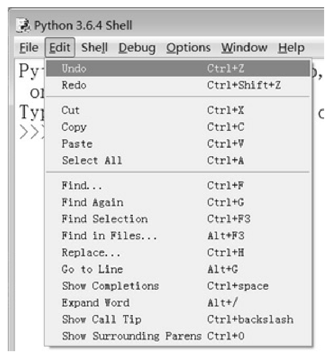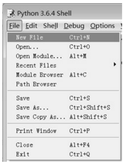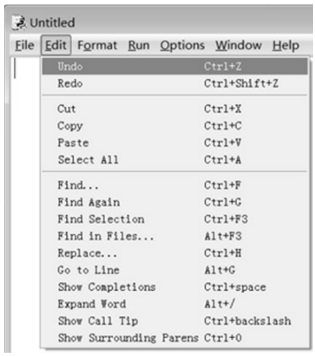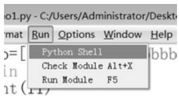 在Edit模式下,通过选择【Run】→【Python Shell】命令,如图2-31所示,打开Shell窗口,进入Shell模式。
