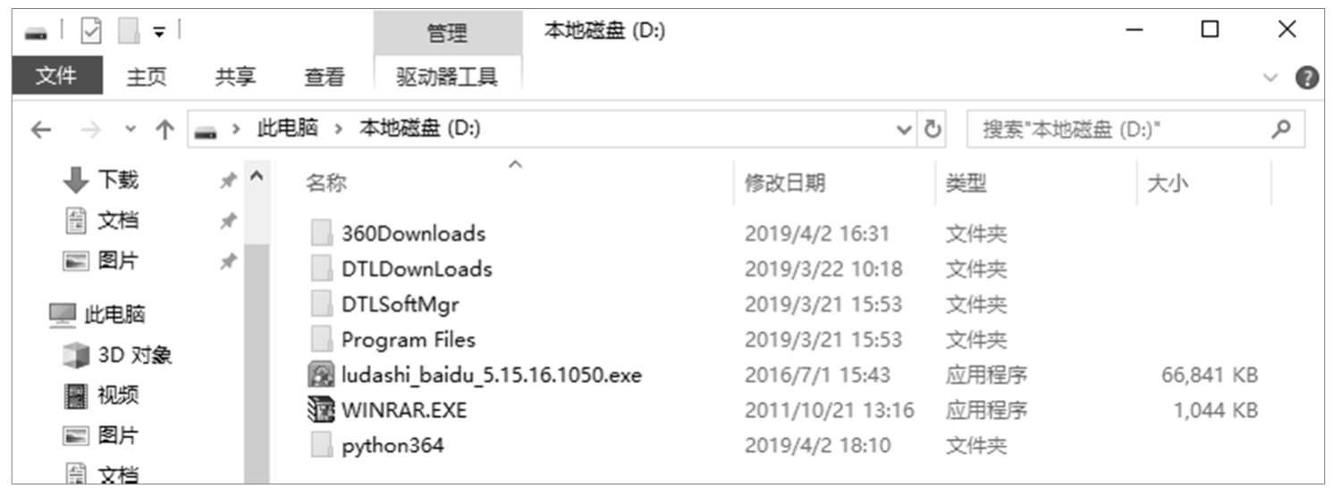 这里必须补充和提醒的是,在安装前,必须在计算机上新建安装Python的文件夹,例如,在D盘上新建一个名为“python364”的文件夹,如图1-16所示。