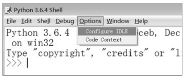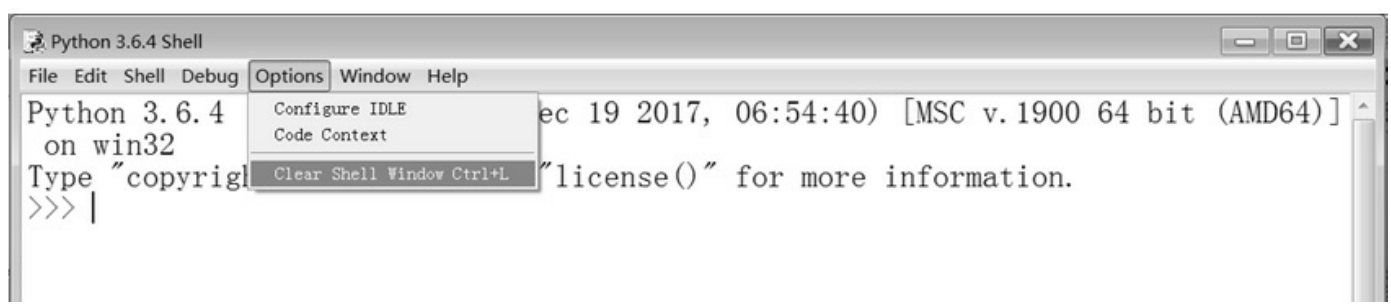 此后,再次打开Python的IDLE,即可看到在【Options】菜单中增加了【Clear Shell Window】命令,如图2-33所示。