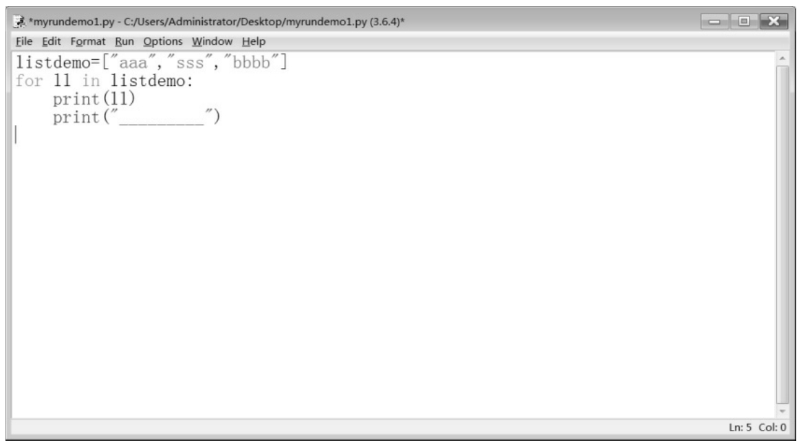 在本例中,自动缩进功能也得到了很好的演示,因为语句print(ll)是被自动缩进的。