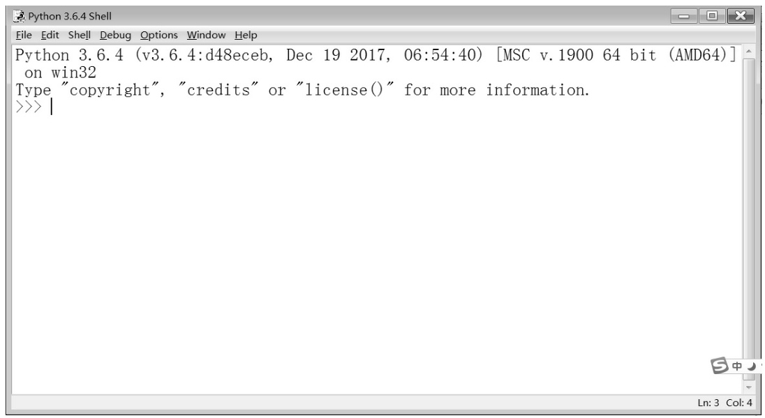 由图1-4可知,在当前计算机上安装的是Python 3.6.3版本。