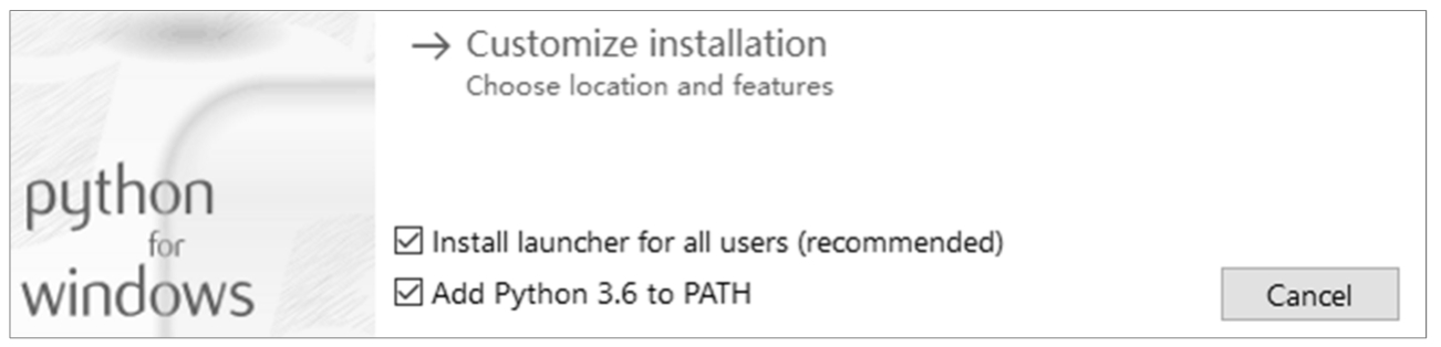 首先,勾选【Add Python 3.6 to PATH】复选框,通过它将Python 3.6的路径信息加入环境变量PATH中(该变量在后面会被提到),如图1-15所示。