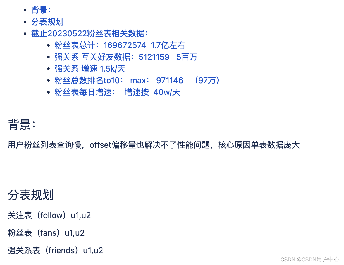 随着活跃用户的增多,作为IT领域的头部用户群体,好友粉丝关系也比不可少,今年粉丝关系达到了1.7亿的数量,单日粉丝数据增速为40万。庞大的数据量导致粉丝服务数据出现瓶颈,如查询粉丝关系缓慢,查询粉丝列表超时,为此我们对服务进行抽象,将粉丝关系分为关注、粉丝、强好友关系三类,对三类关系进行不同的数据表拆分优化。目前已平滑迁移线上用户无感知的切换到优化后的逻辑。