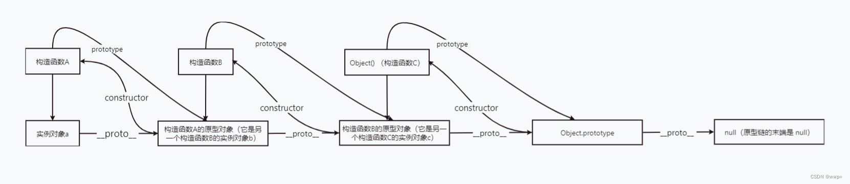三个对象:构造函数的实例对象,构造函数(本质上也是对象),构造函数的原型对象(它是其他构造函数的实例)。