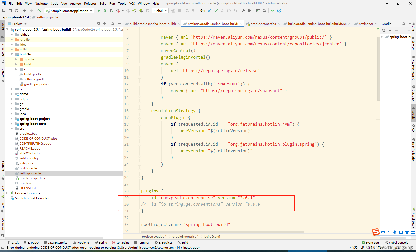 本文介绍了如何构建SpringBoot 2.5.4的源码,包括修改buildSrc/build.gradle以禁用格式检查,设置buildSrc/settings.gradle,更新build.gradle和settings.gradle文件以避免验证,配置gradle-wrapper.properties文件,处理编译错误,以及使用最新版的Kotlin插件。