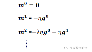 每一步的移动,我们都用 m 来表示,其实可以写成之前所有算出来的Gradient 的 Weighted Sum,表达式如下: