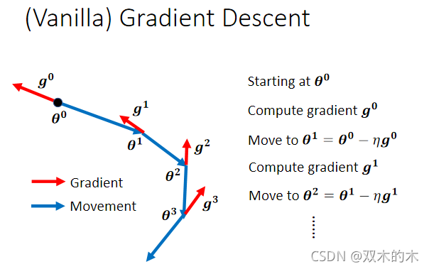那我们先很快的复习一下,原来的 Gradient Descent 长得是什么样子,Vanilla (一般的)的 Gradient Descent长什么样子呢?