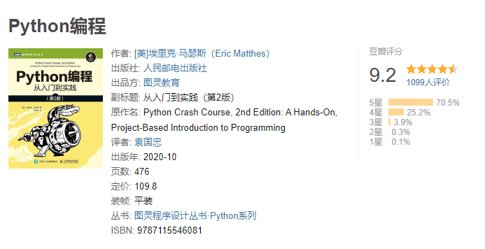 根据豆瓣评分的高低,这里介绍了一些经典入门书籍,大家根据自身情况选择尝试。