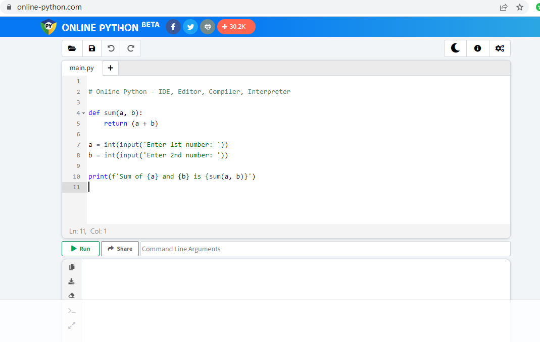 一个在线编辑和运行代码的网站(www.online-python.com/),如果你没有搭建本地 Python 运行环境,那么这个网站就是你最好的帮手。