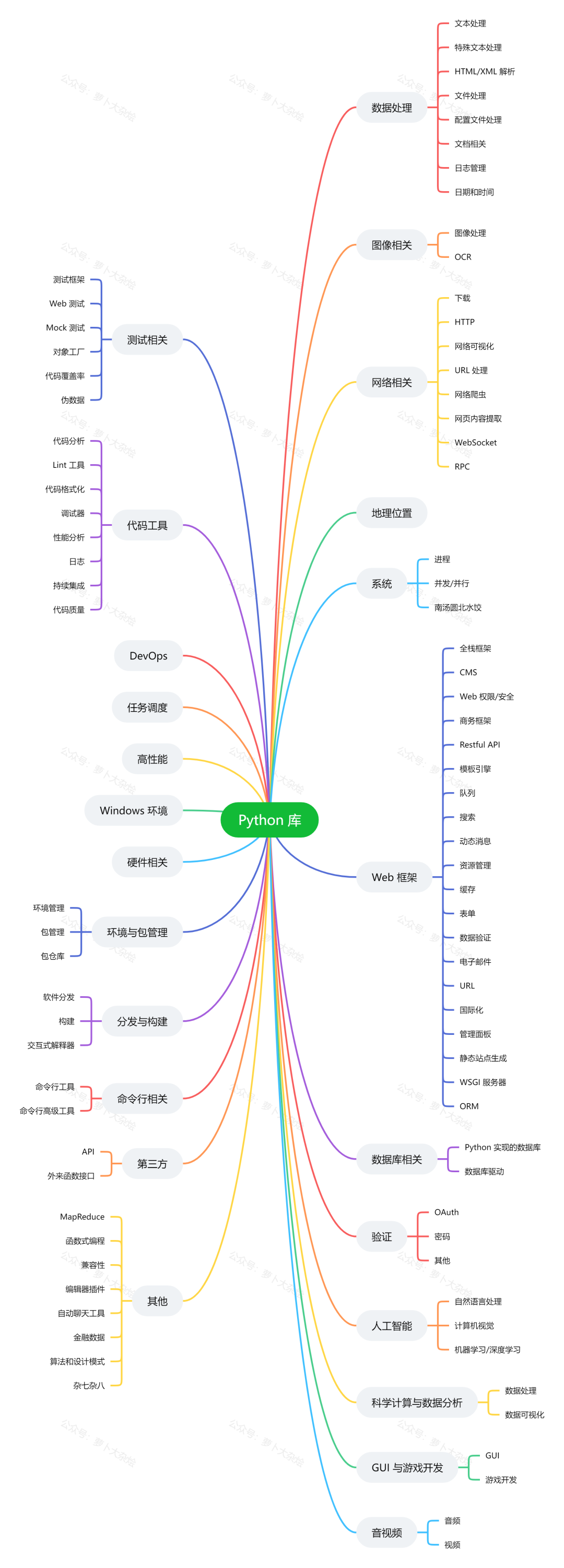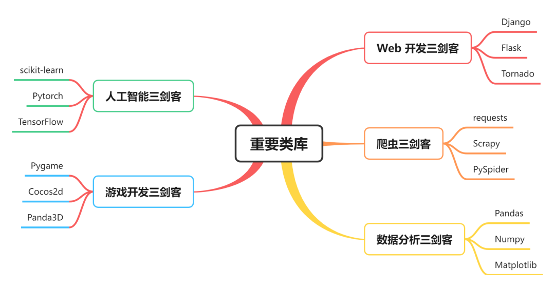 上图总结了近千个 Python 类库,从中也可以看出 Python 生态的完备性。