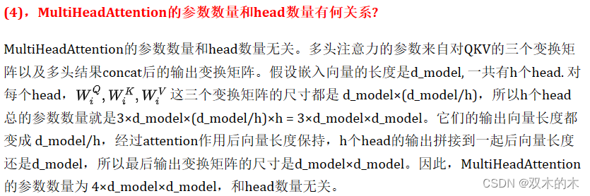 1, 多头注意力: MultiHeadAttention (用于融合不同单词之间的信息, 三处使用场景,①Encoder self-attention, ② Decoder masked-self-attention, ③ Encoder-Decoder cross-attention)